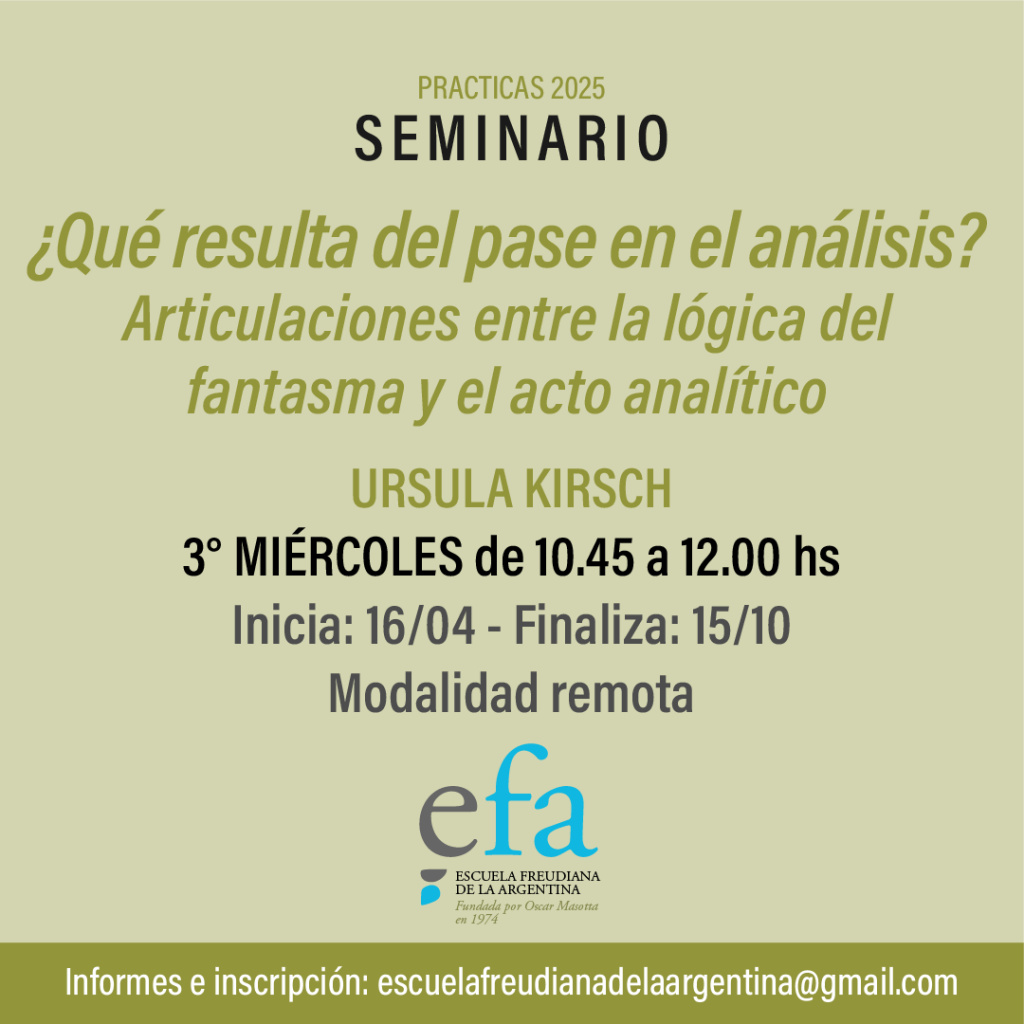 La práctica del análisis se dirige a un resultado. Llamamos a ese resultado un pase en el análisis. Conlleva la articulación entre la lógica del fantasma y el acto analítico.