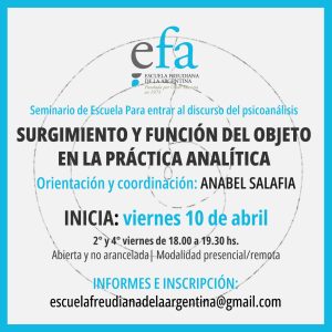 Seminario de Escuela para entrar al discurso del psicoanálisis: «Surgimiento y función del objeto a en la práctica analítica»